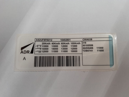 Achsschild ADR Code AS2XL1RMC007